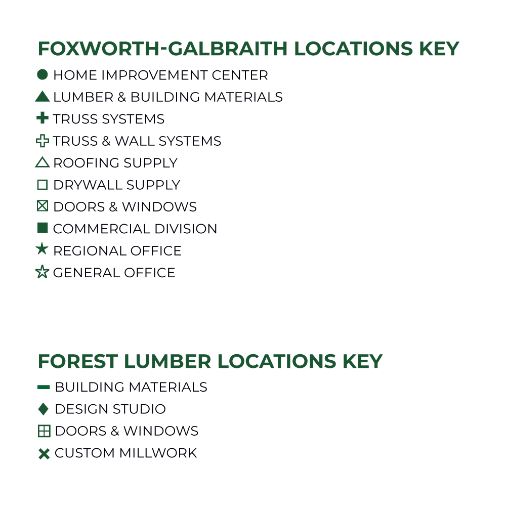Foxworth-Galbraith operates lumber and building material distribution locations, home improvement centers, truss manufacturing plants, and roofing and drywall distribution locations across the Southwest.